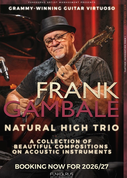 The Natural High Trio music originates from Frank’s ‘Natural High’ and ‘Natural Selection’ albums - a collection of beautiful compositions on acoustic instruments (piano, guitar, and bass). The compositions are sensual, melodic, heartwarming, and exciting, played by virtuoso Gambale with his breathtaking pals Dominique Di Piazza on bass and Jerry Leonide/Yanos Nagy on piano. An unforgettable evening of pure honey for the ears.