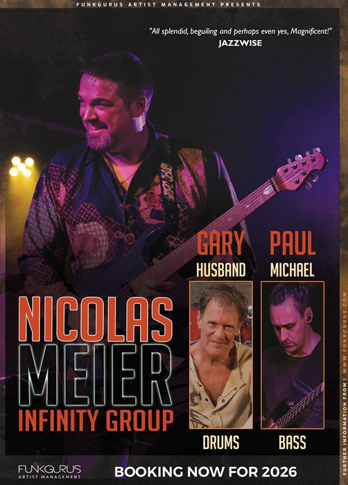 Nicolas Meier Infinity Group offers a more fusion version of Nicolas' music and features critically acclaimed, legendary drummer Gary Husband and bassist Paul Michael with Nicolas on acoustic and electric guitars.